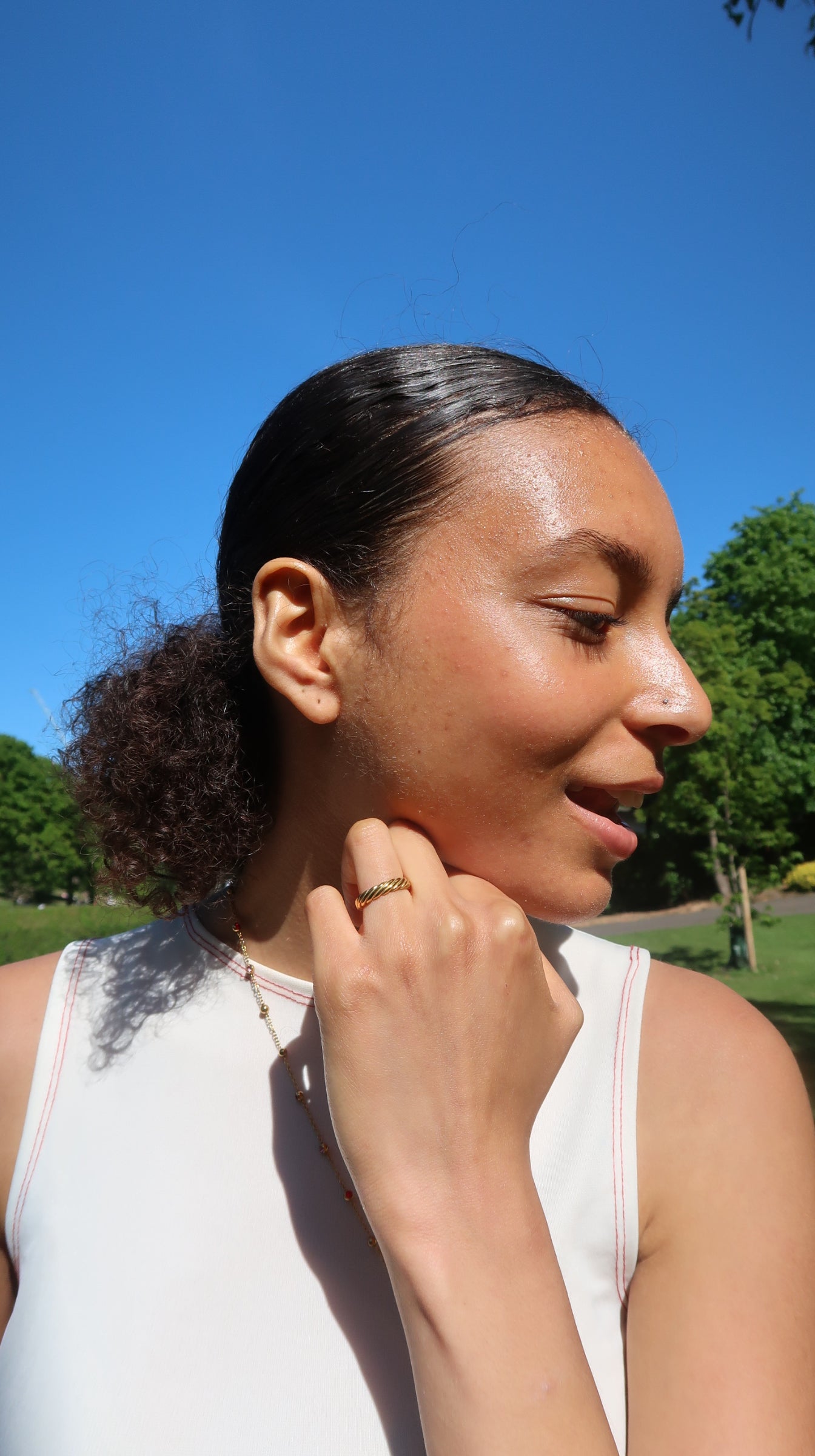 The Amara Ring is a romantic take on a classic textured band. With soft ridged curves and a golden finish, it’s designed to catch the light from every angle. Wear it solo or stacked — it’s understated but never goes unnoticed.