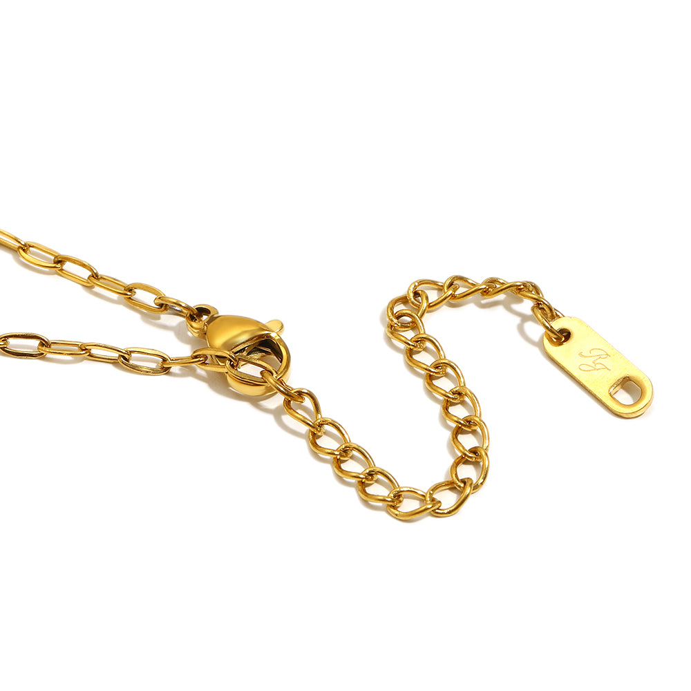 This necklace is crafted from medical grade stainless steel and 18k gold plated, making it waterproof, hypoallergenic, tarnish-resistant, and perfect for everyday wear.