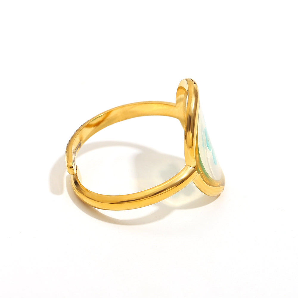 Made from 18k gold-plated stainless steel, this ring is waterproof, hypoallergenic, and fully adjustable for a comfortable, secure fit.