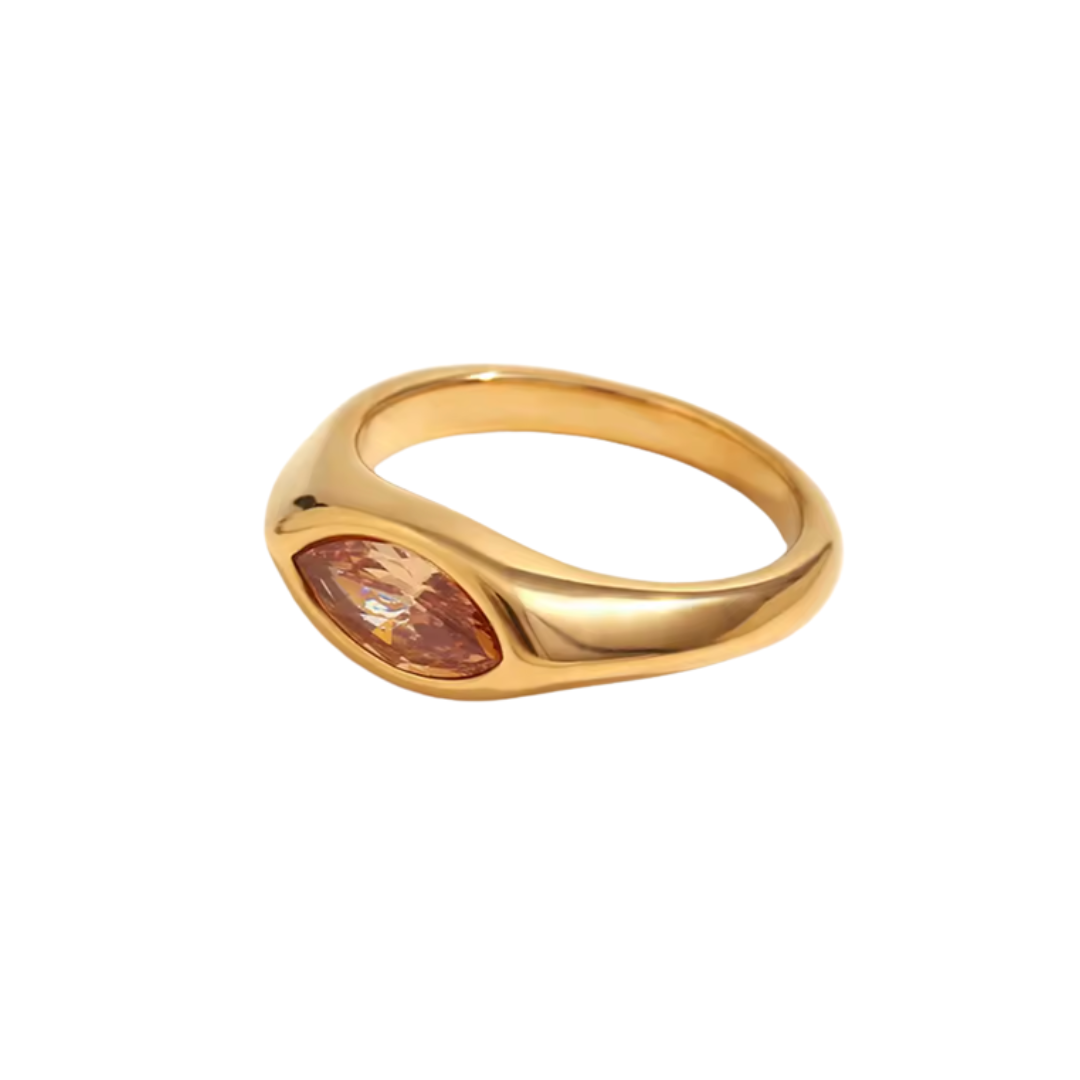 Bailey's orange gemstone ring is a gold ring with a unique orange marquise gemstone. This simple and elegant ring complements any outfit.