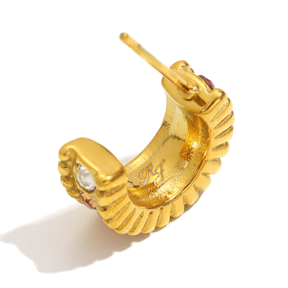 Claire's rainbow hoops are small hoop earrings accented with rainbow gemstones. These earring are the perfect lightweight earrings to add to your daily rotation.