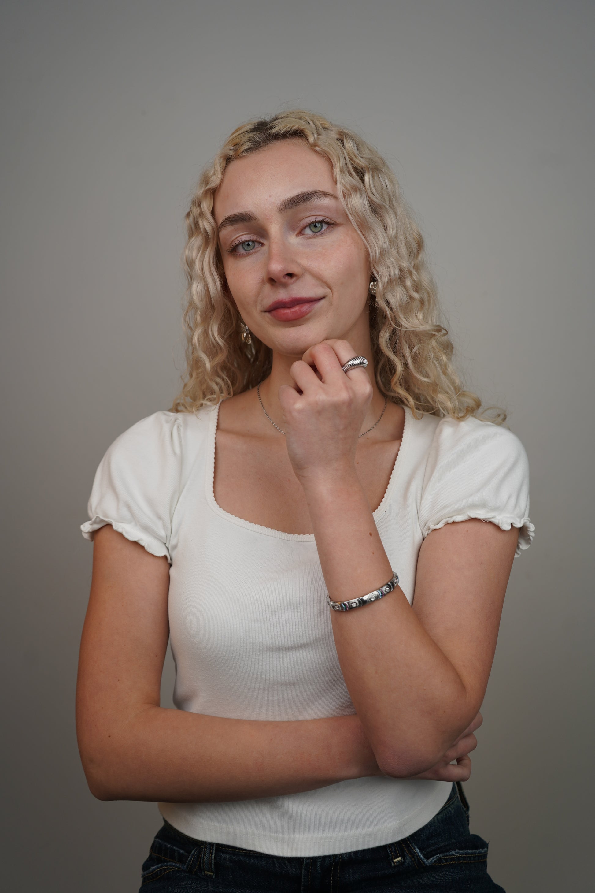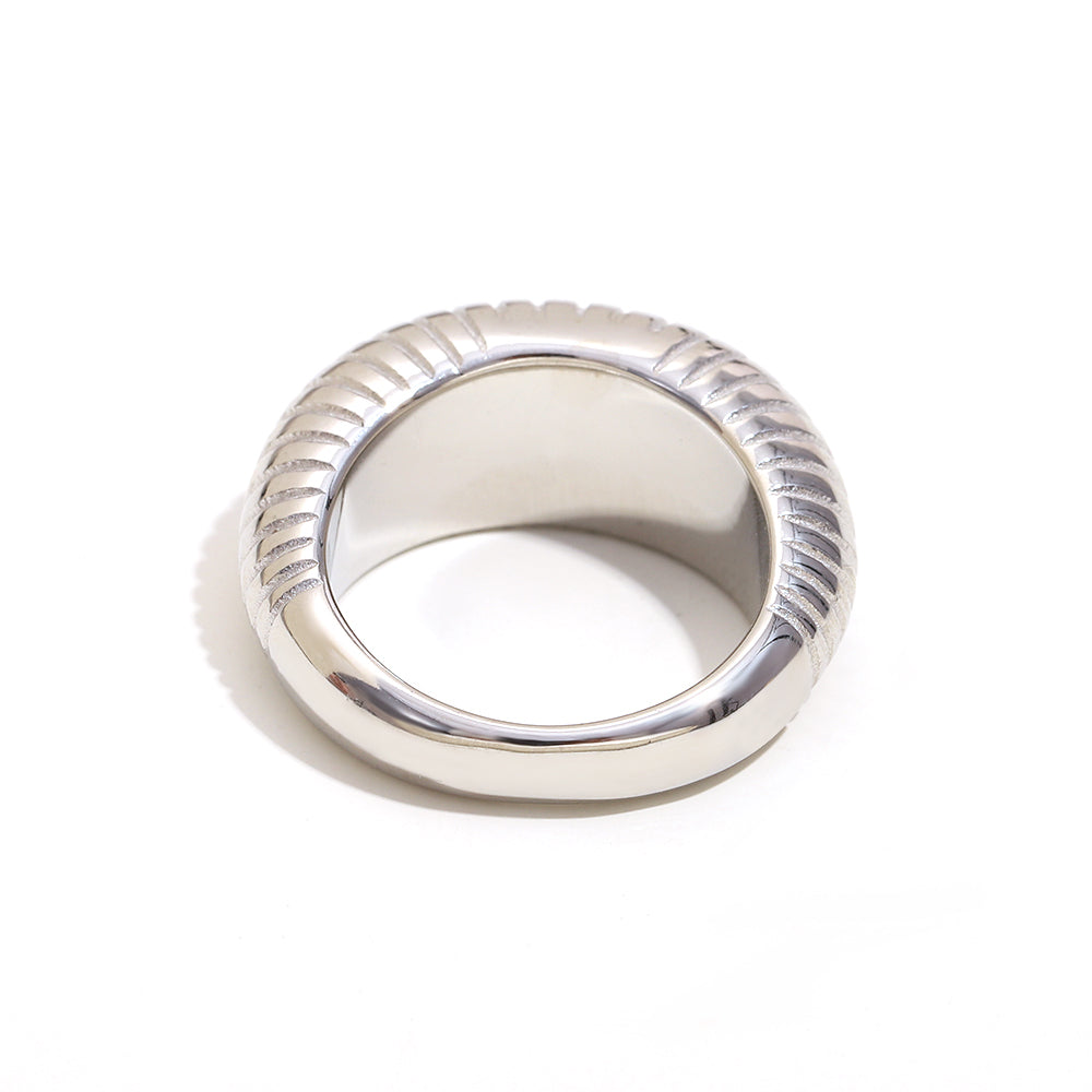 Clio’s Silver Ring is a bold, ridged band with a sculptural finish and timeless shape. Designed to add texture and shine to your everyday stack, it’s the perfect statement piece for effortless styling.