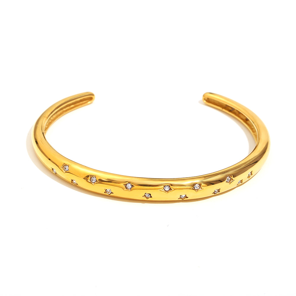 - This gold bangle adorned with white stars radiates vibrancy and vitality - a versatile must-have accessory to elevate your look