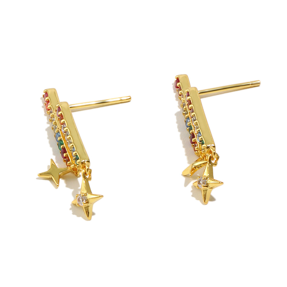 Cosima's star huggies are a unique pair of stud earrings with two star droplets covered in multicoloured gemstones. These lightweight earrings are perfect for your everyday stack.