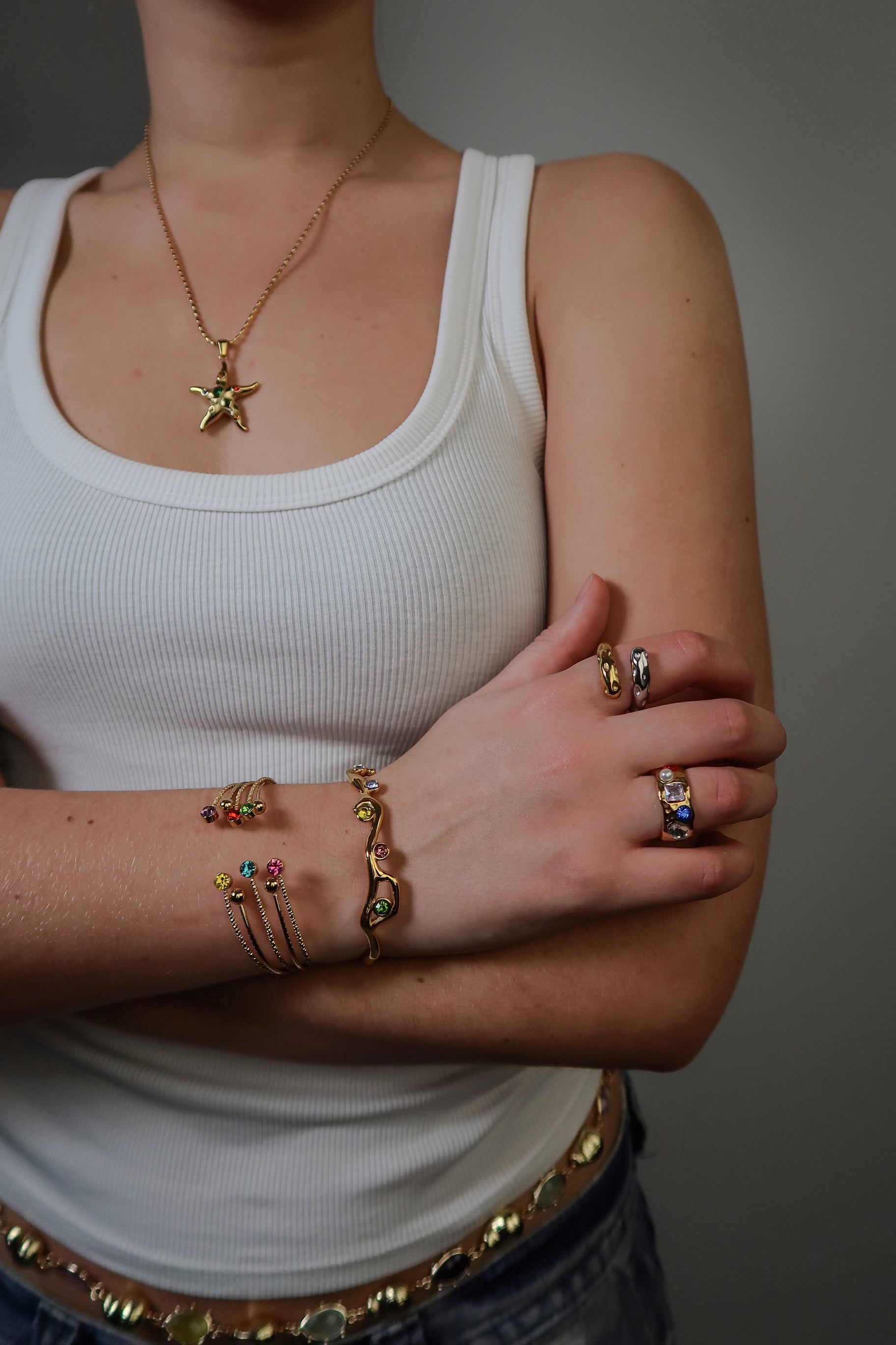 Our jewellery is crafted from 316L medical-grade stainless steel or 925 sterling silver, making it hypoallergenic and safe for sensitive skin. Each piece is 18k gold-plated using PVD coating, ensuring long-lasting shine that won’t tarnish or turn your skin green.
