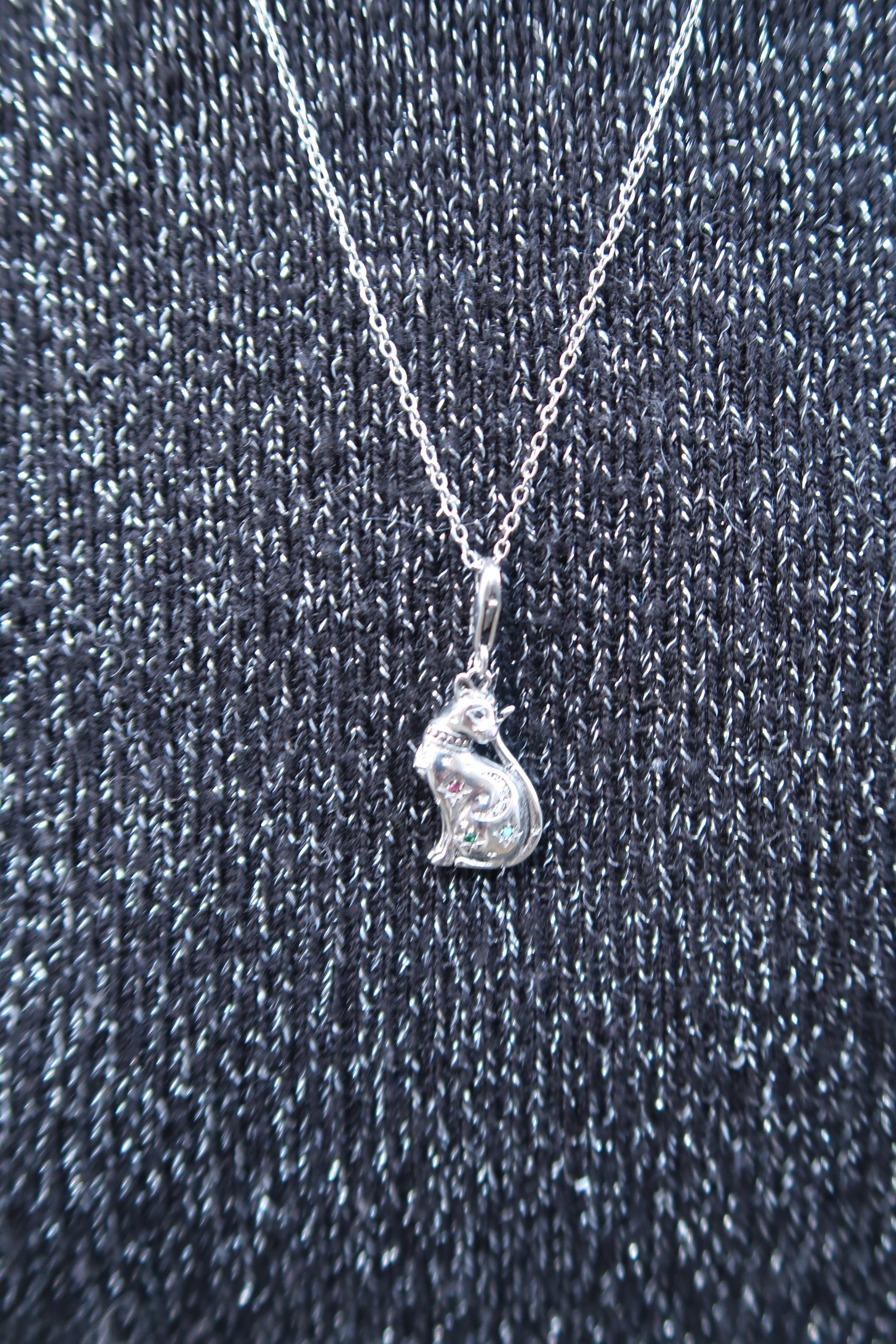 Elizabeth’s superpower cat necklace in silver