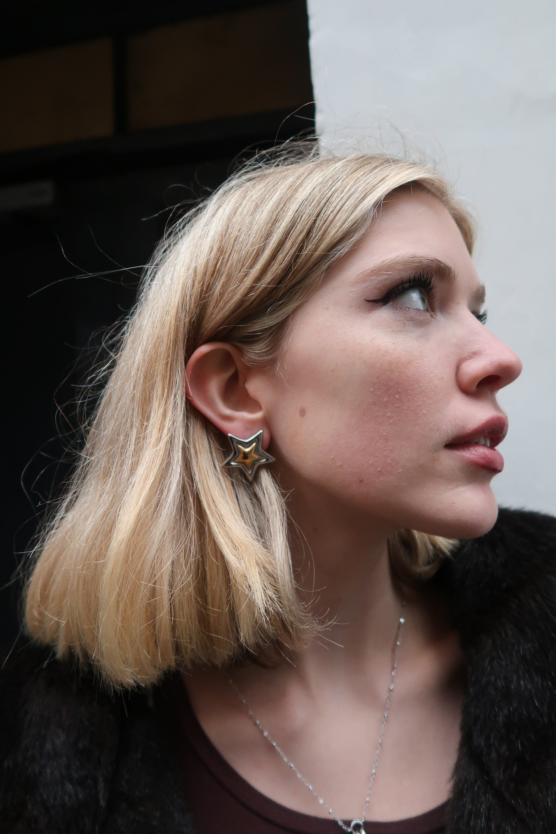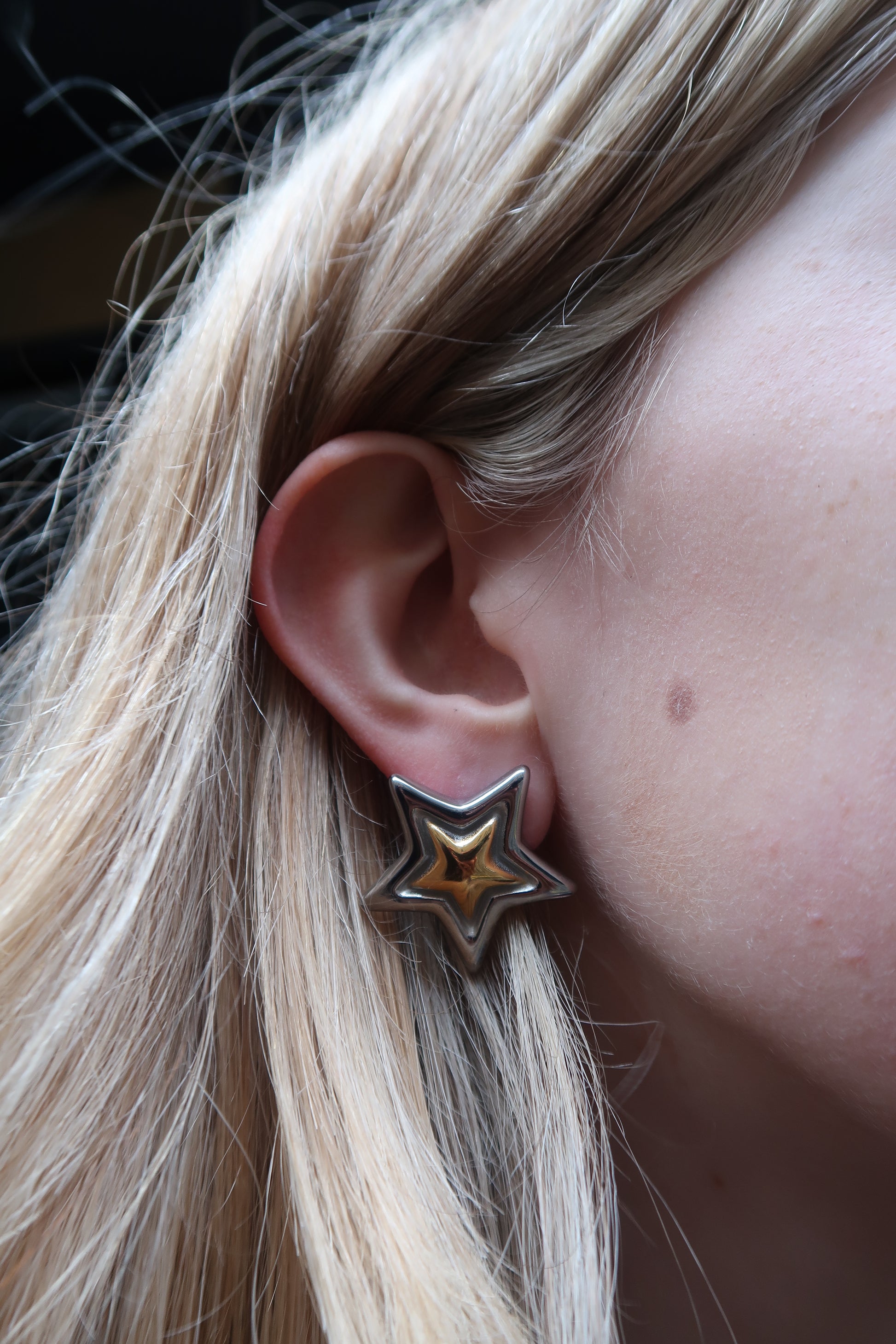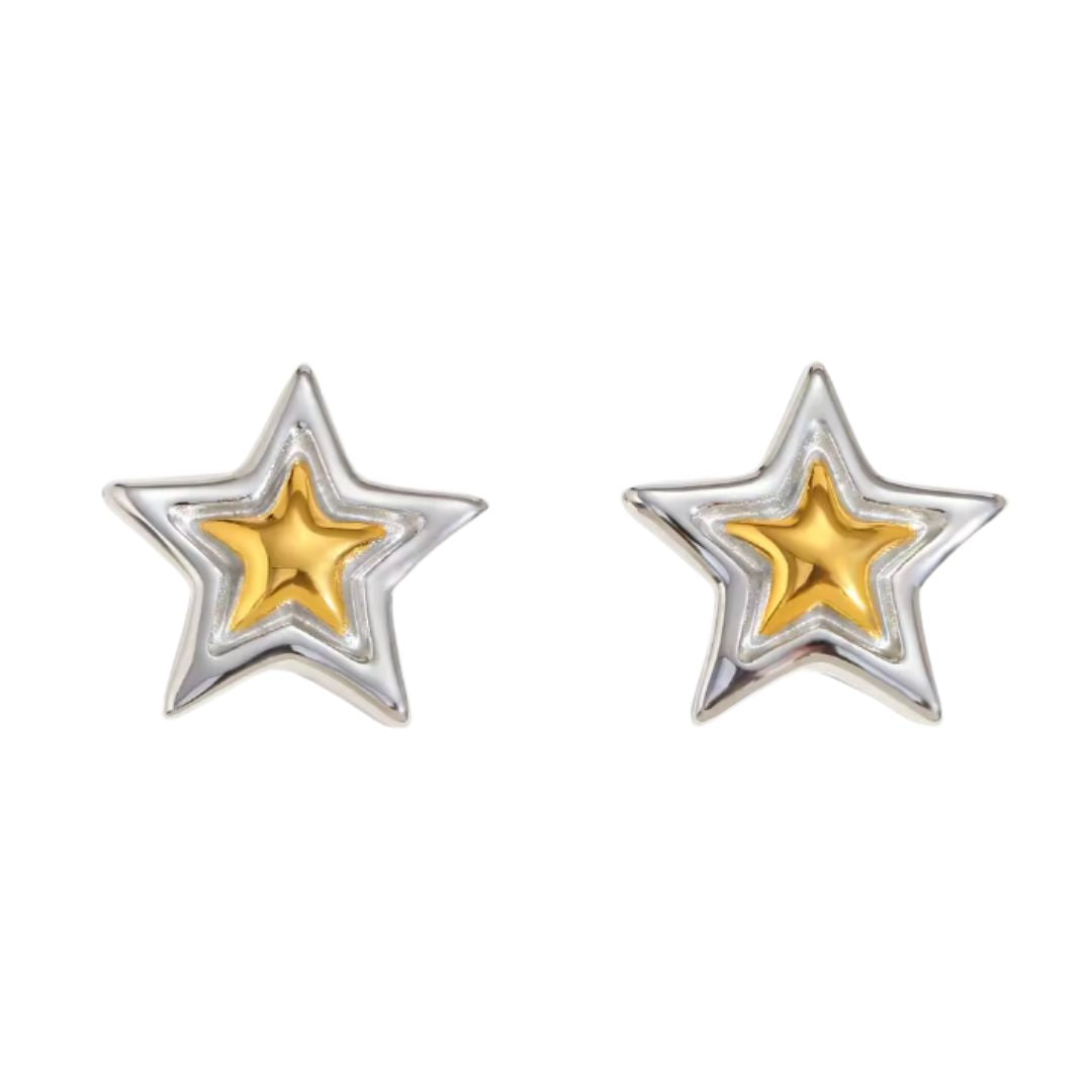 Ellie's mixed star studs are star shaped stud earrings with a double layered star motif in a two-toned silver and gold finish. These are lightweight and versatile perfect for any occasion.