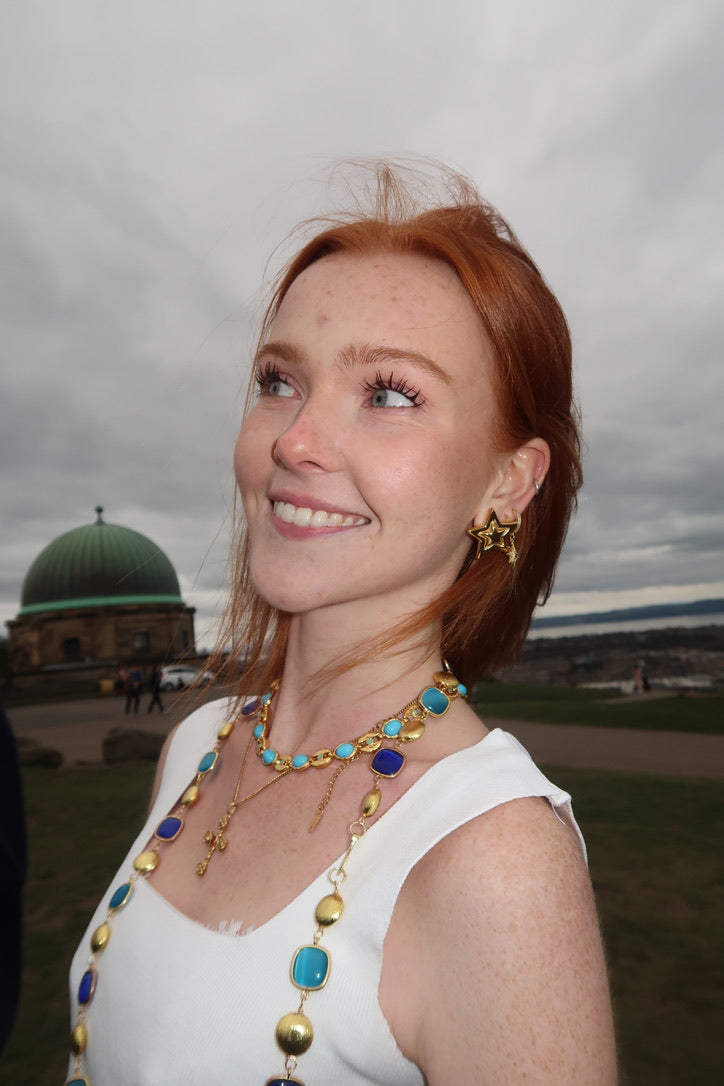 Ellie's star studs are star-shaped studs with a double-layered star motif in a bright gold finish. These are lightweight and versatile, perfect for any occasion.