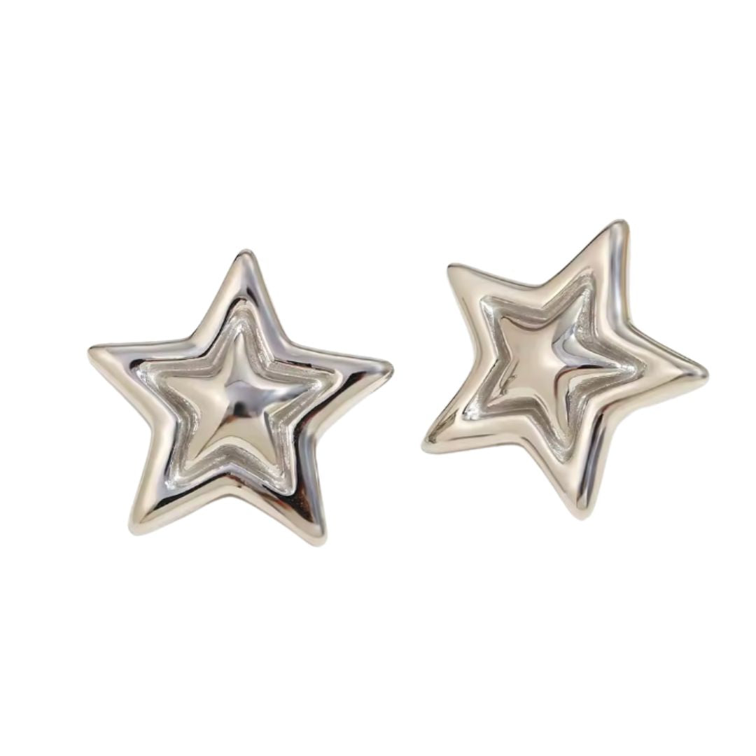 Ellie's Star Studs in Silver are star-shaped studs with a double layered star motif in a bright silver finish. These are lightweight and versatile, perfect for any occasion.