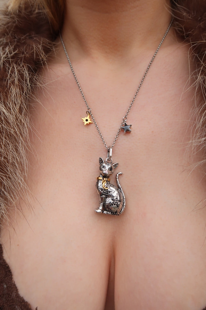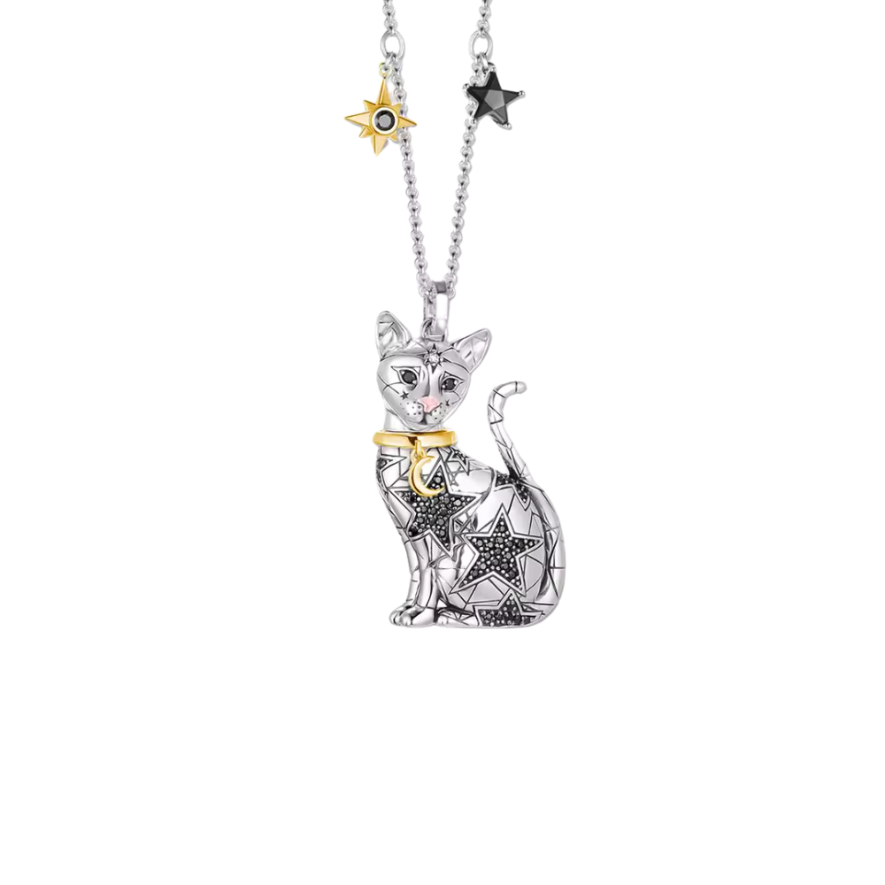 Evie’s Cat Necklace is a playful yet elegant statement piece, crafted in 925 sterling silver with a beautifully sculpted cat pendant adorned in star-detailed engraving. Suspended from a 45–50cm adjustable chain, the 2.5 x 4.9cm pendant strikes the perfect balance between charm and sophistication.