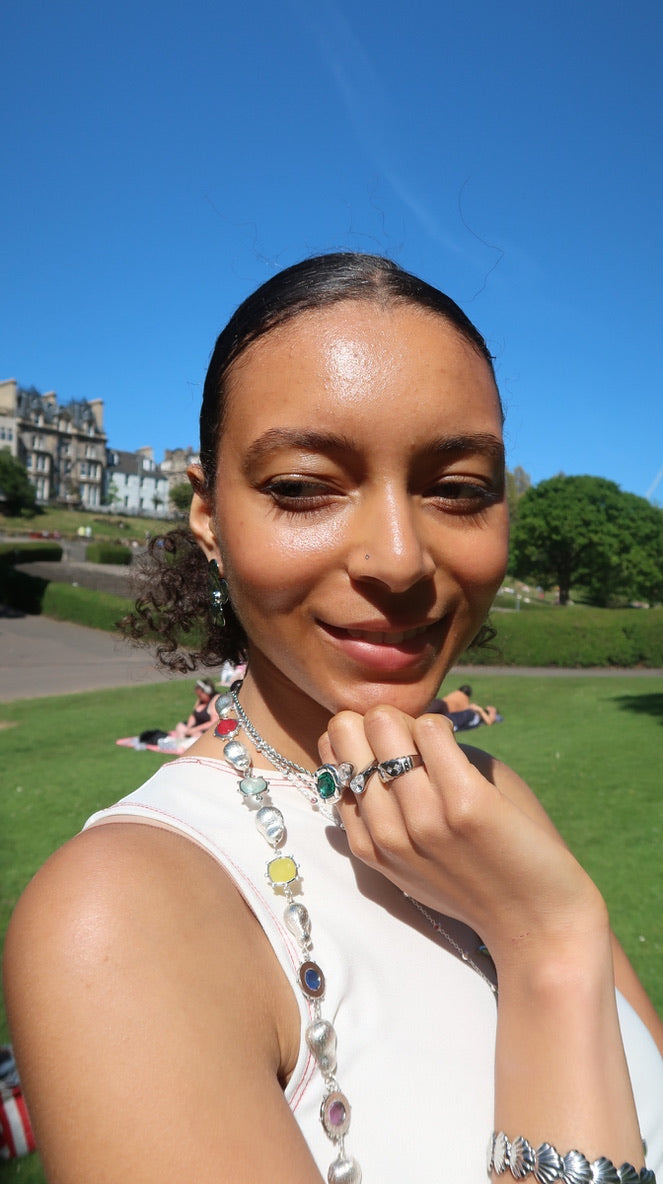 Our jewellery is crafted from 316L medical-grade stainless steel or 925 sterling silver, making it hypoallergenic and safe for sensitive skin. Each piece is 18k gold-plated using PVD coating, ensuring long-lasting shine that won’t tarnish or turn your skin green.