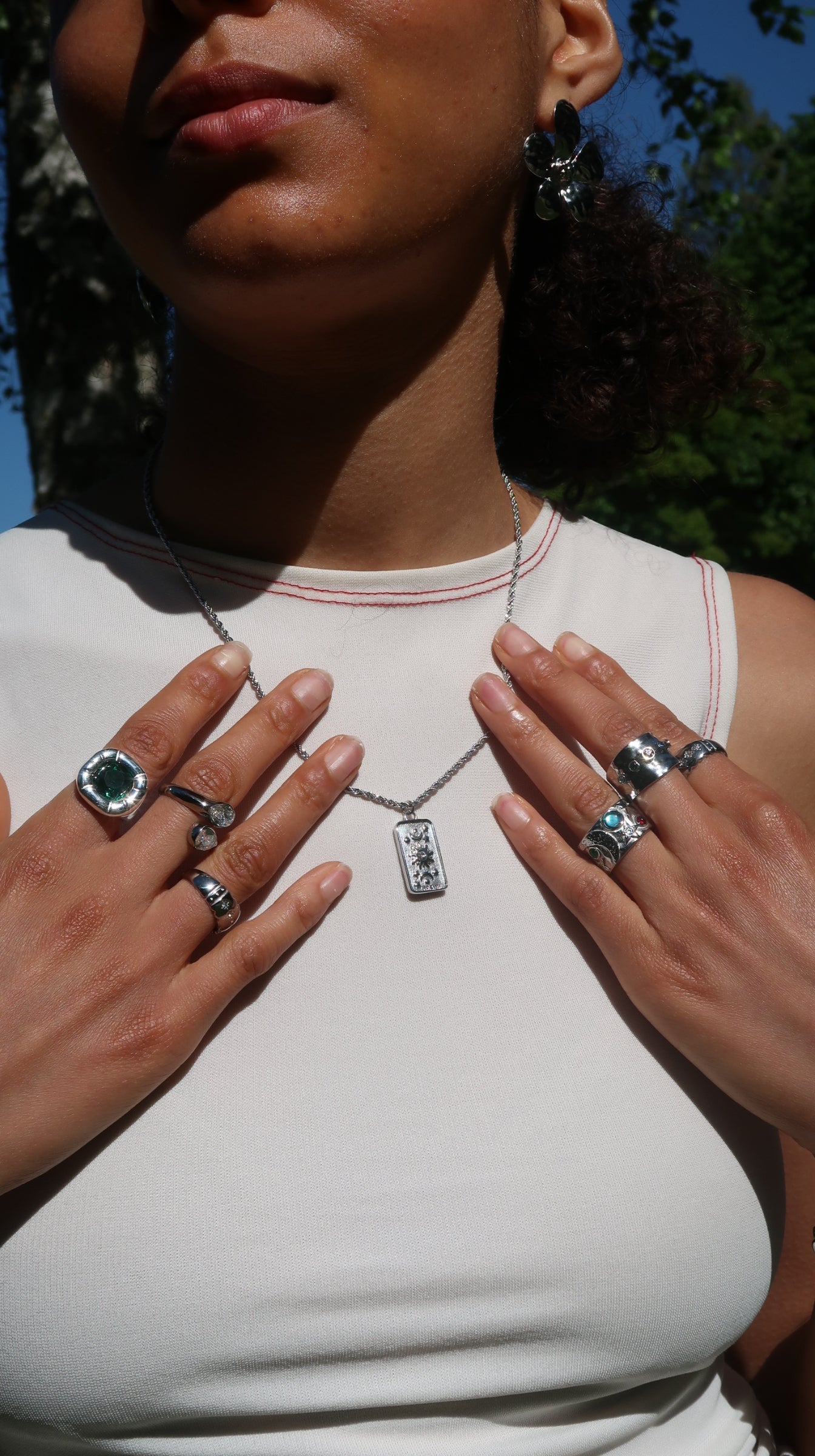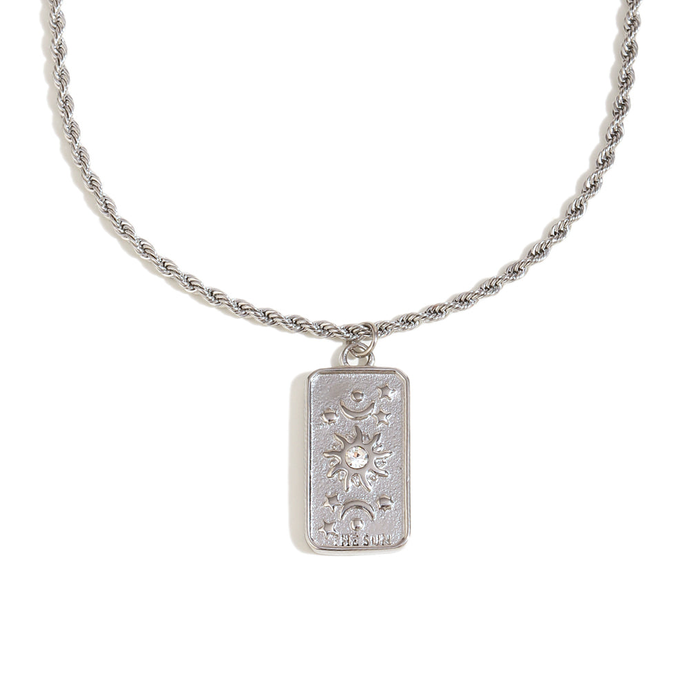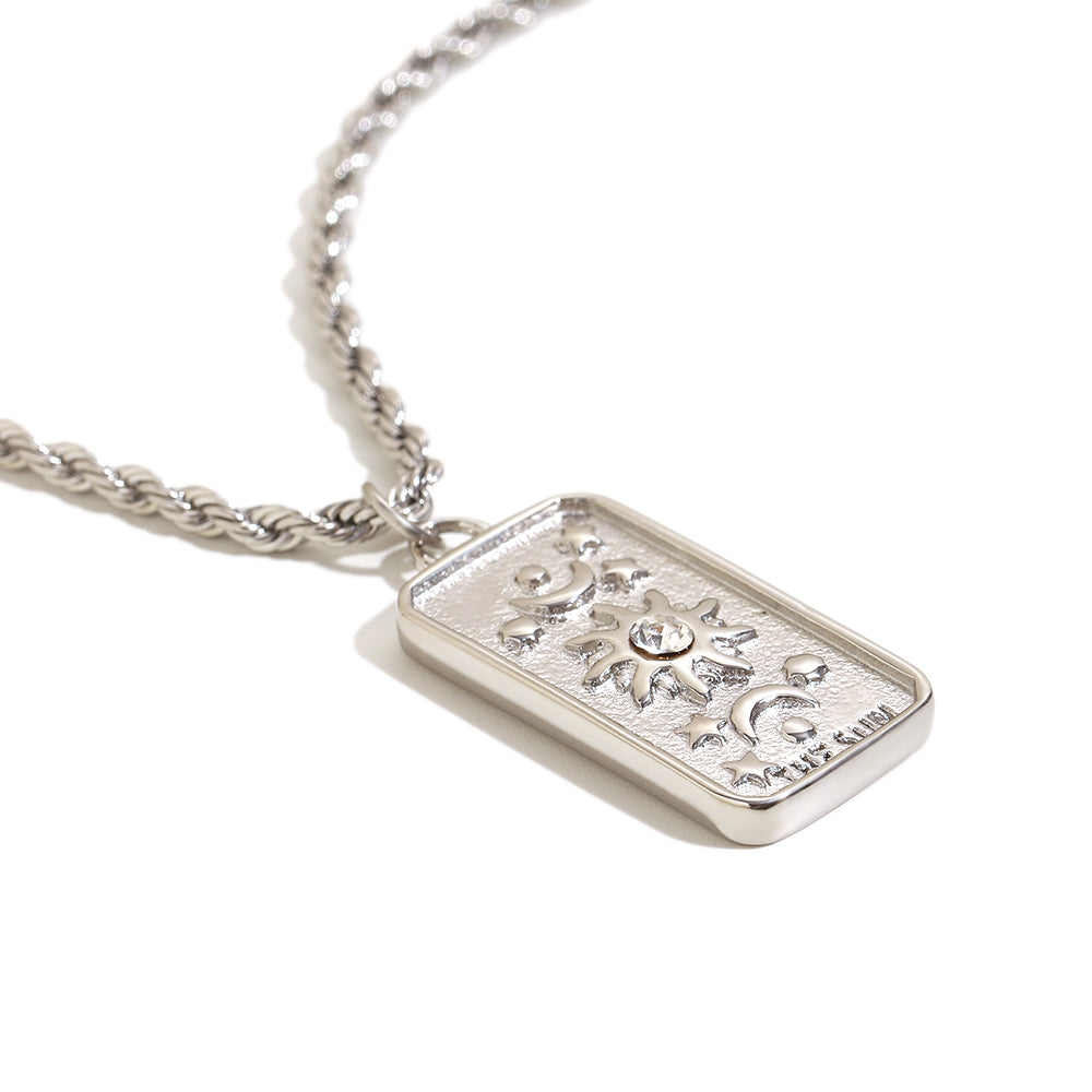 Lila’s Sun Necklace is a tarot-inspired piece that symbolizes positivity, joy, and new beginnings. This is the perfect piece to layer with other necklaces or wear on its own for a simple and elegant look.