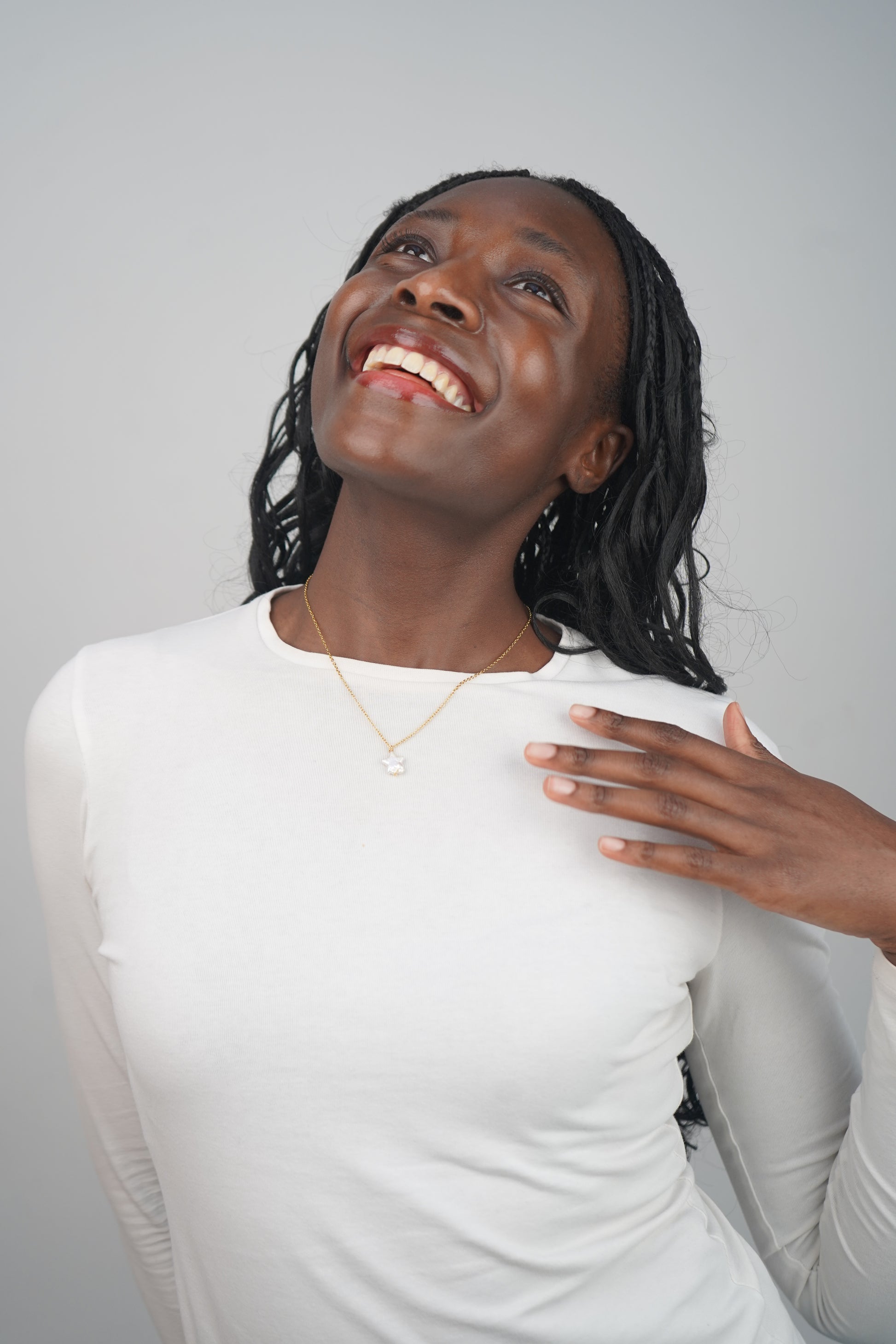 Delicate and luminous, the Lyra Necklace features a handcrafted star-shaped mother-of-pearl pendant suspended on a fine gold chain. Each piece is one-of-a-kind, with the organic glow of real mother-of-pearl catching the light beautifully.