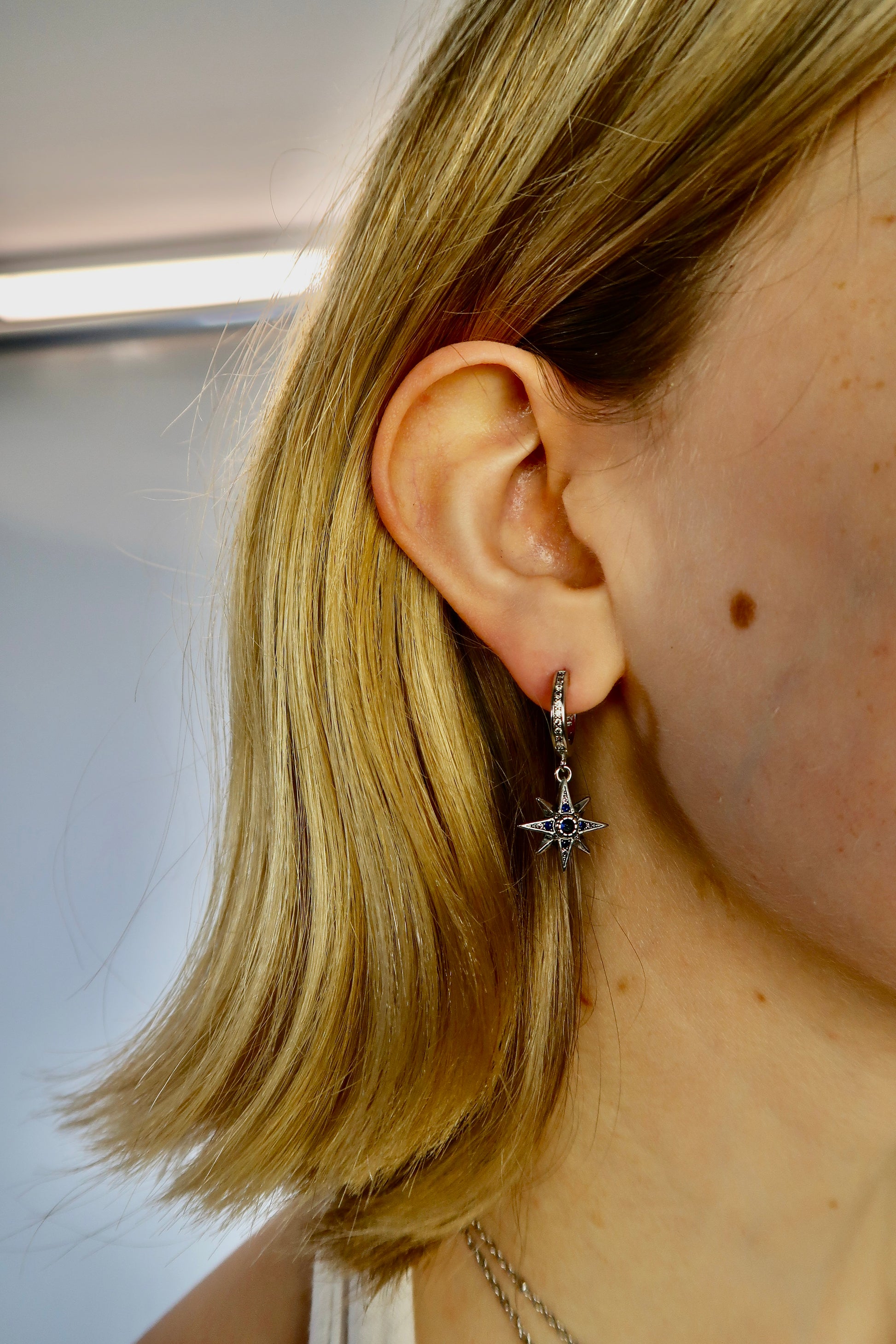 Maia’s Midnight sky huggies in silver