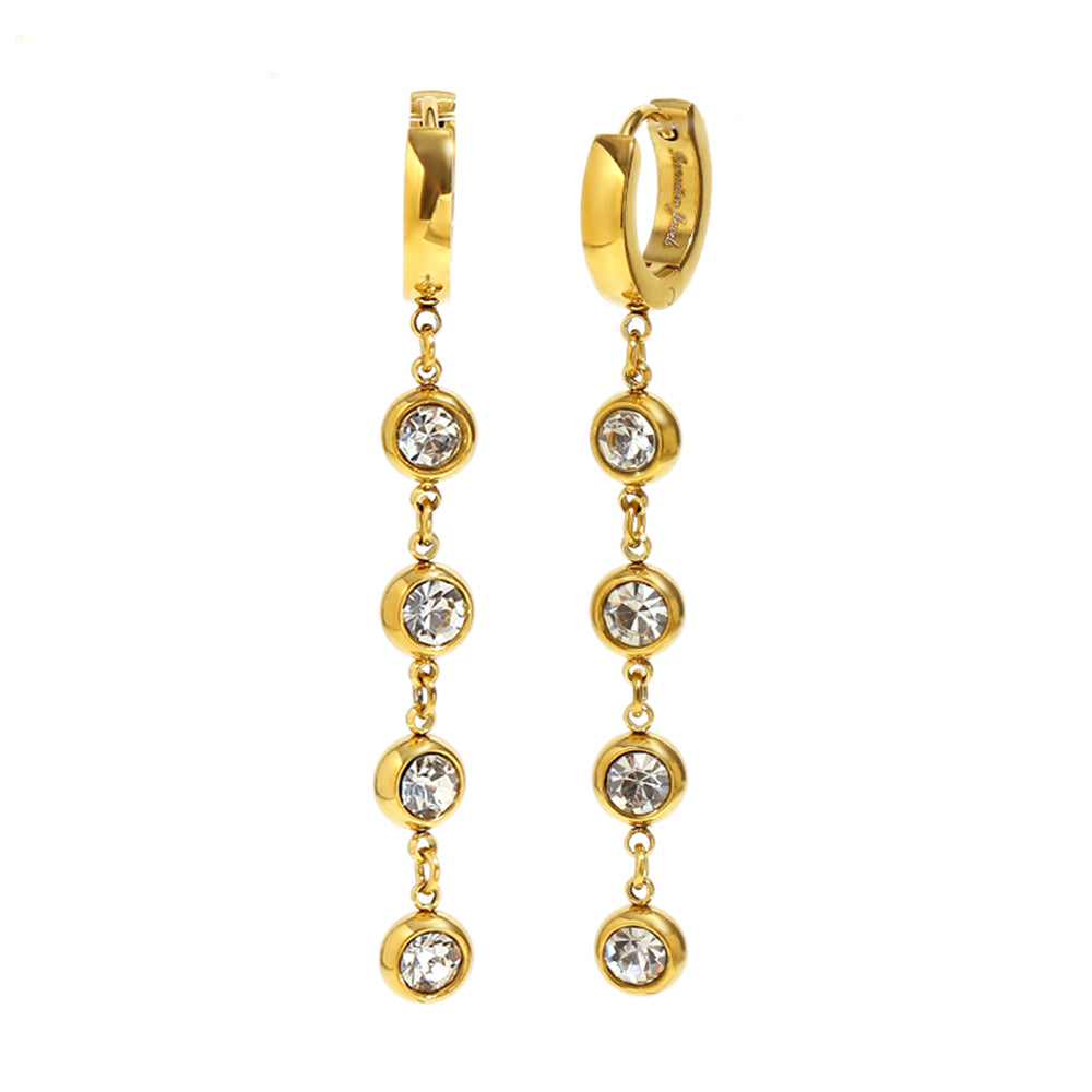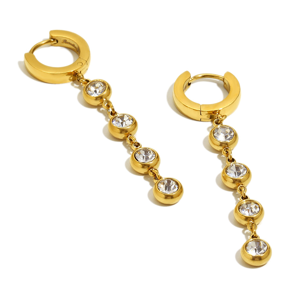 Penelope's droplet earrings are small hoop earrings with four white gemstones dangling below. These earrings are simple yet elegant and perfect to elevate any look.