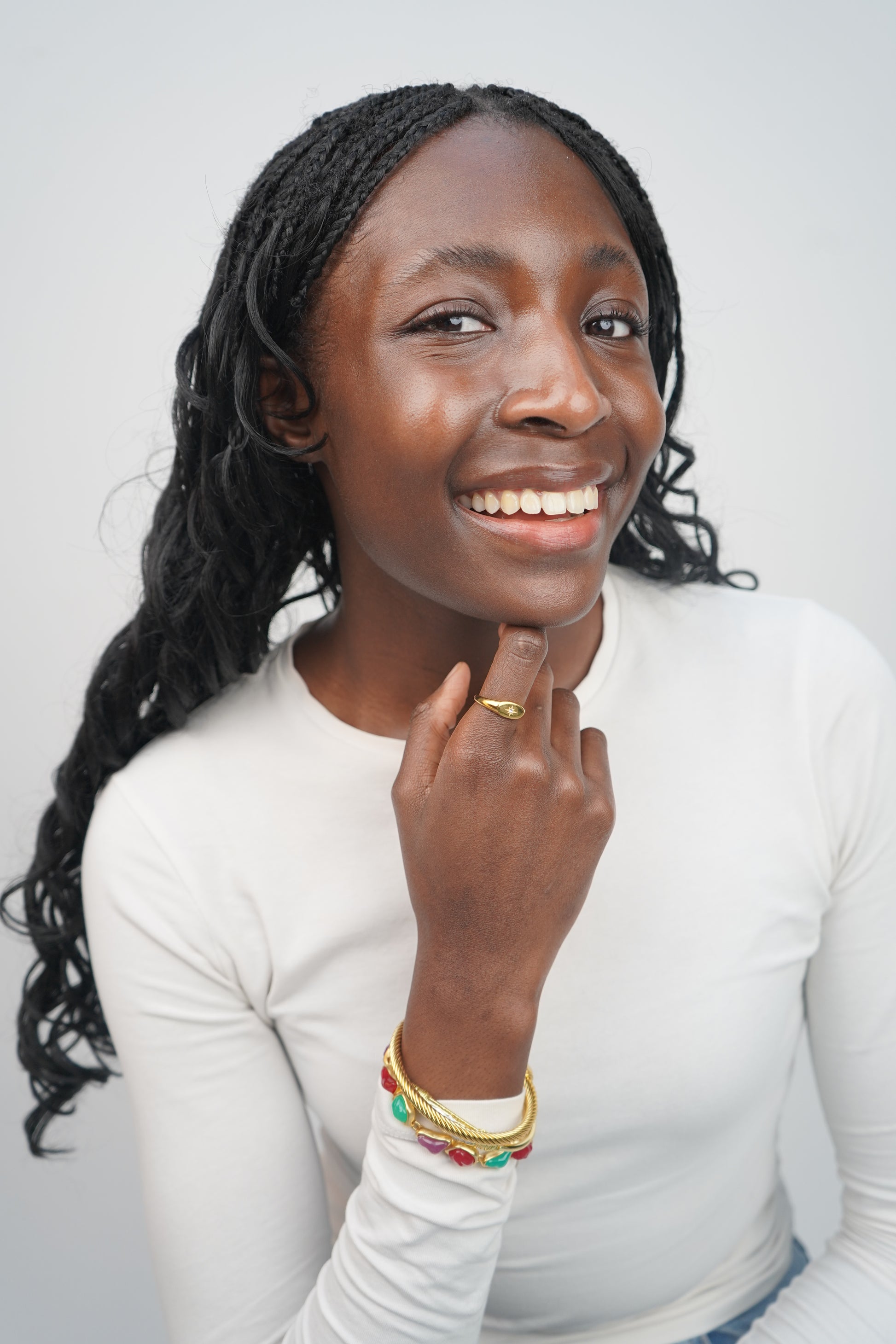 Our jewellery is crafted from 316L medical-grade stainless steel or 925 sterling silver, making it hypoallergenic and safe for sensitive skin. Each piece is 18k gold-plated using PVD coating, ensuring long-lasting shine that won’t tarnish or turn your skin green.