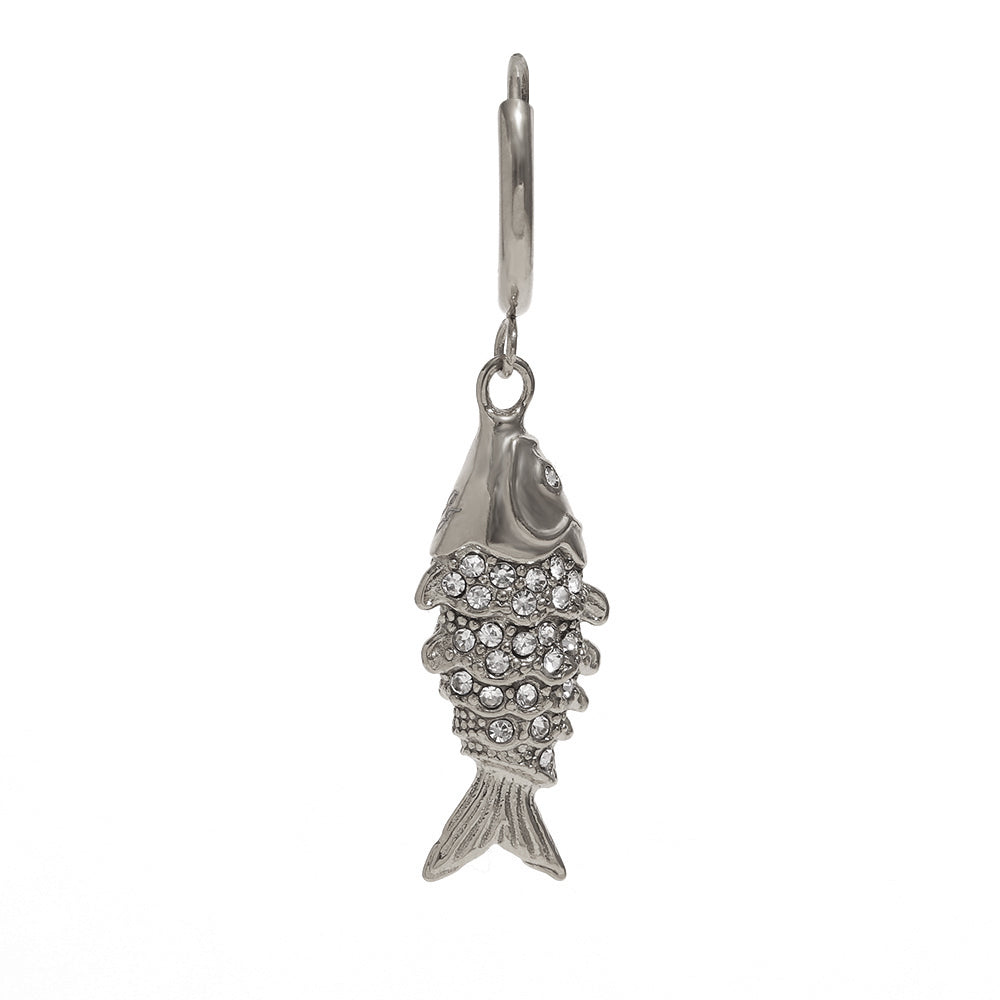 Stella’s Silver Fish Hoops are a playful yet elegant take on seaside jewellery. Featuring a detailed gold fish charm encrusted with shimmering crystals, these statement hoops bring a little sparkle and whimsy to your everyday look.