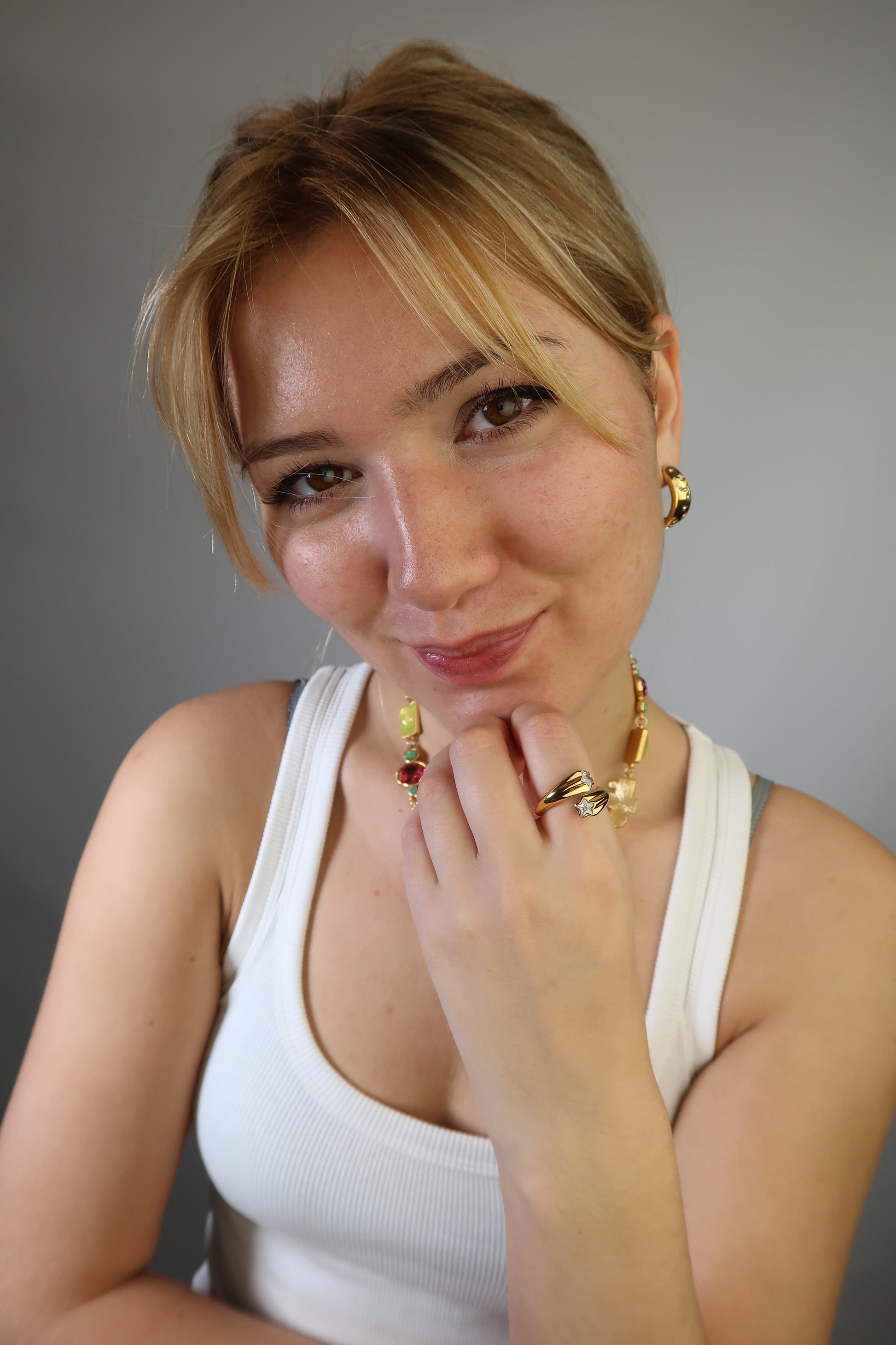 Susannah’s star ring is a gold ring that features two star-shaped gemstones. This ring is perfect to add to your daily stack, or to wear by itself.