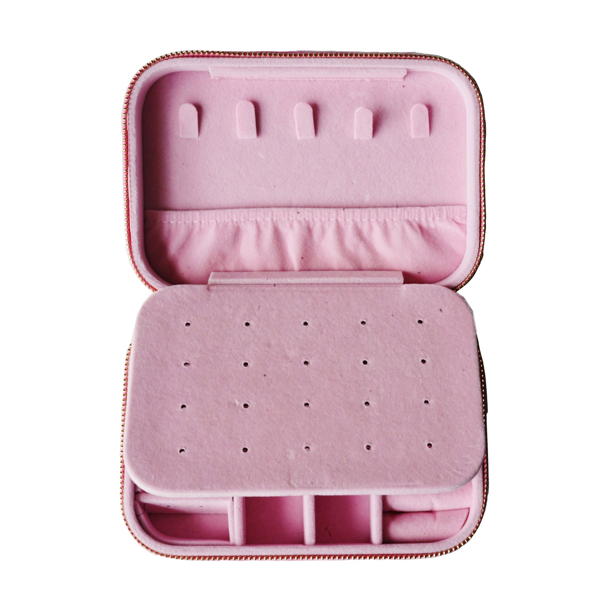 Designed in plush pink velvet, this compact case (15.5 x 10.5 x 5 cm) is ideal for keeping your favourite pieces safe and organised, whether you're jetting off on a longer getaway or adding a touch of luxury to your dressing table. With smart compartments, a secure zip closure, and double-layer storage, it’s surprisingly spacious yet compact enough to carry anywhere.