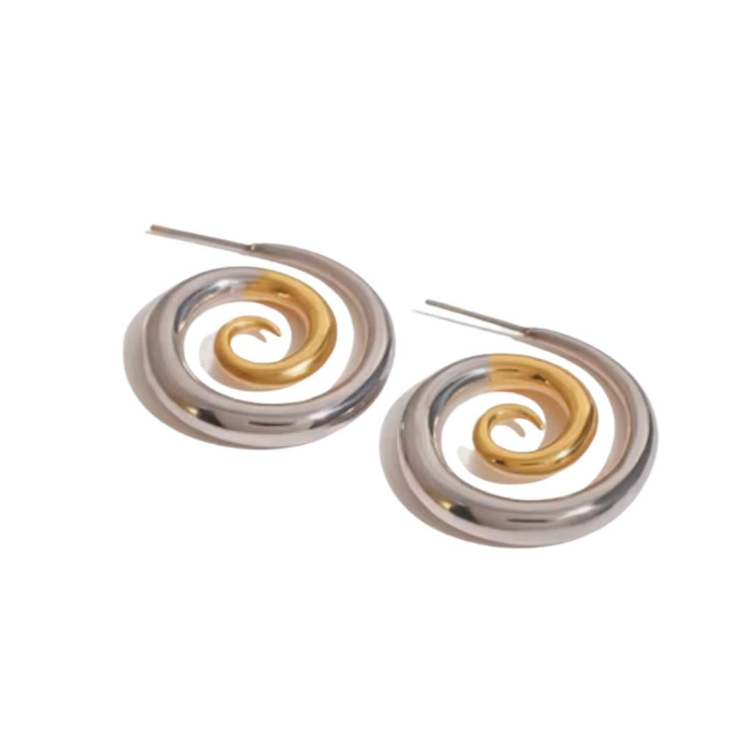 Tilly's mixed hoops are hoop earrings with an elegant spiral design that mixes gold and silver tones for a dynamic, layered look. These are lightweight and versatile, perfect for any occasion.