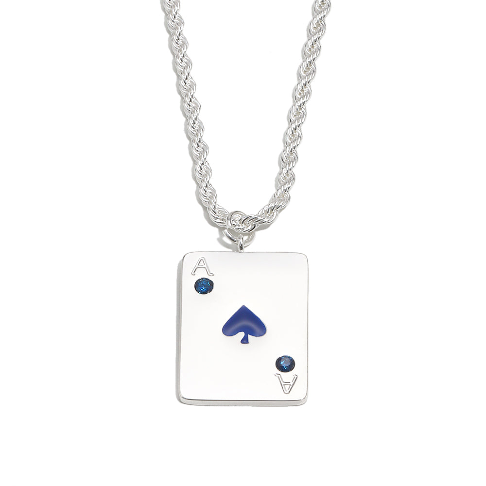 Vesper's ace of spades necklace in silver is a simple silver necklace featuring a small pendant in the shape of an ace of diamonds. This necklace is the perfect playful yet elegant piece to pair with any look.