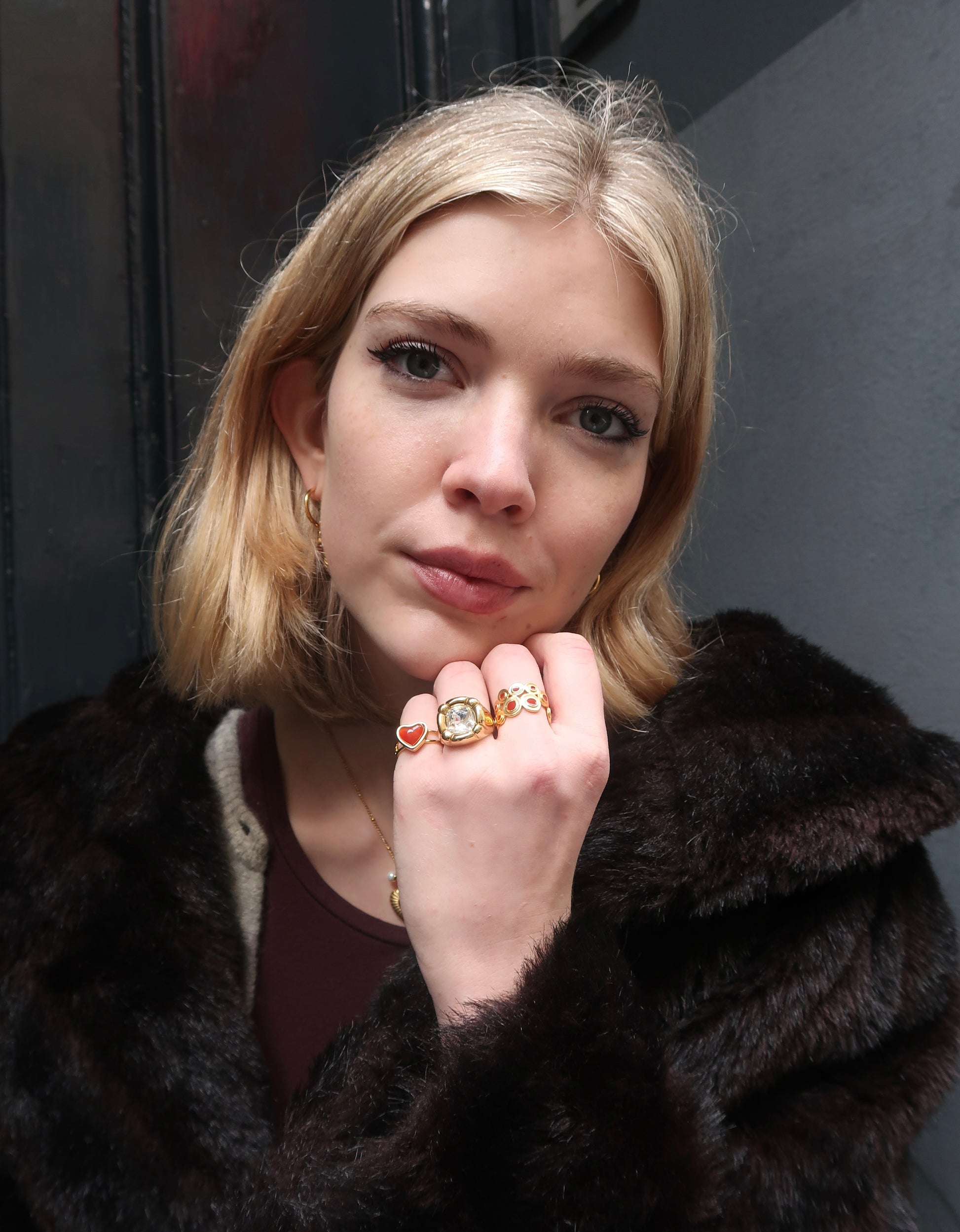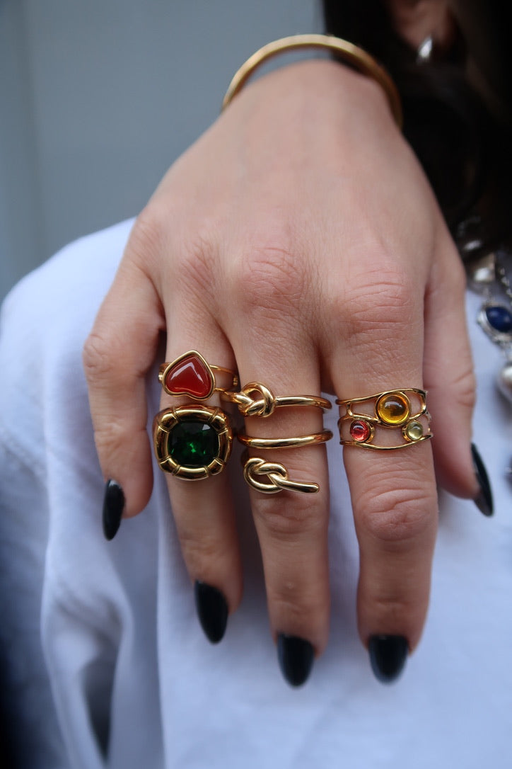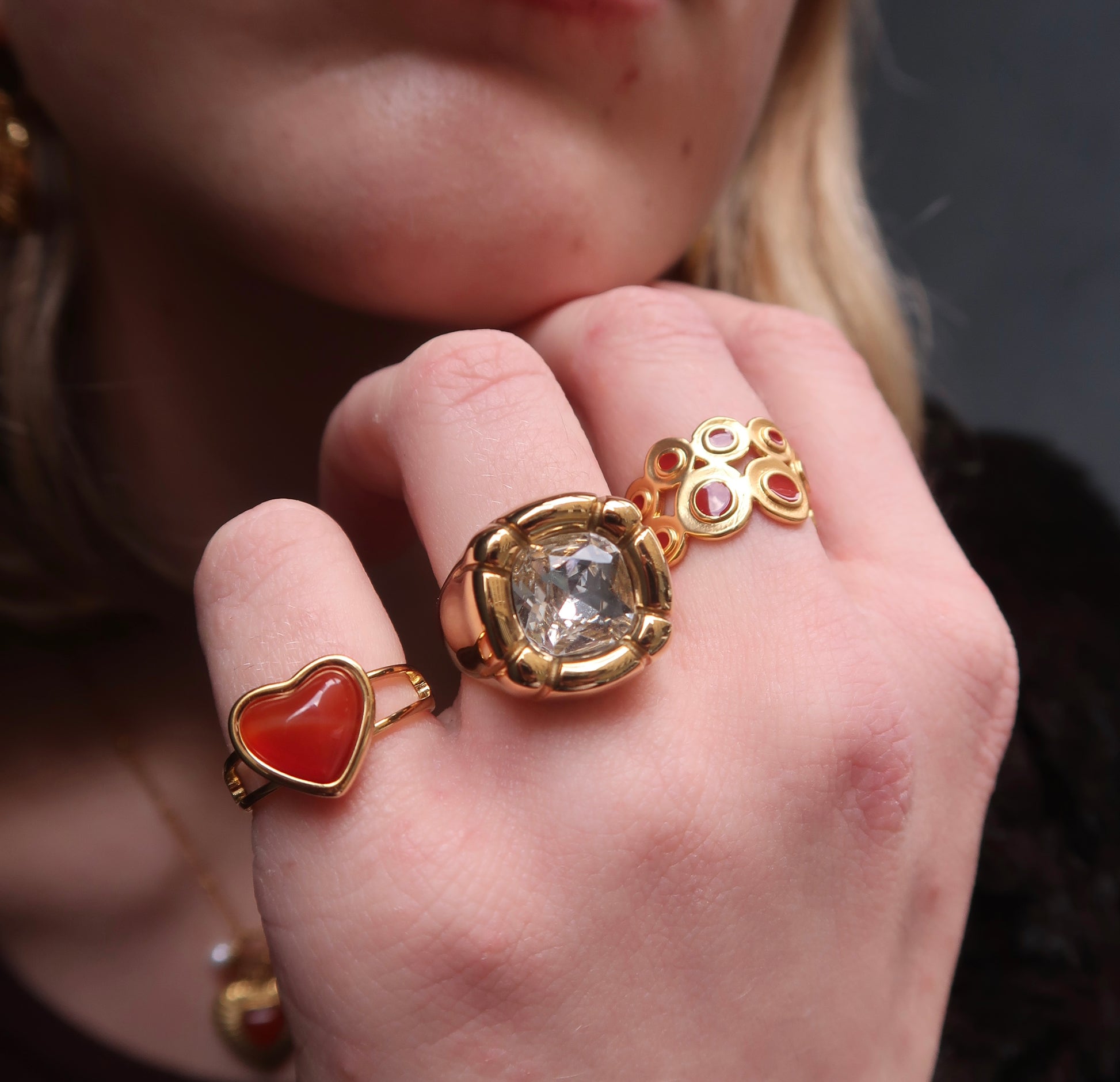 Viola's heart ring is an a adjustable ring that features a unique red heart gemstone in the center.